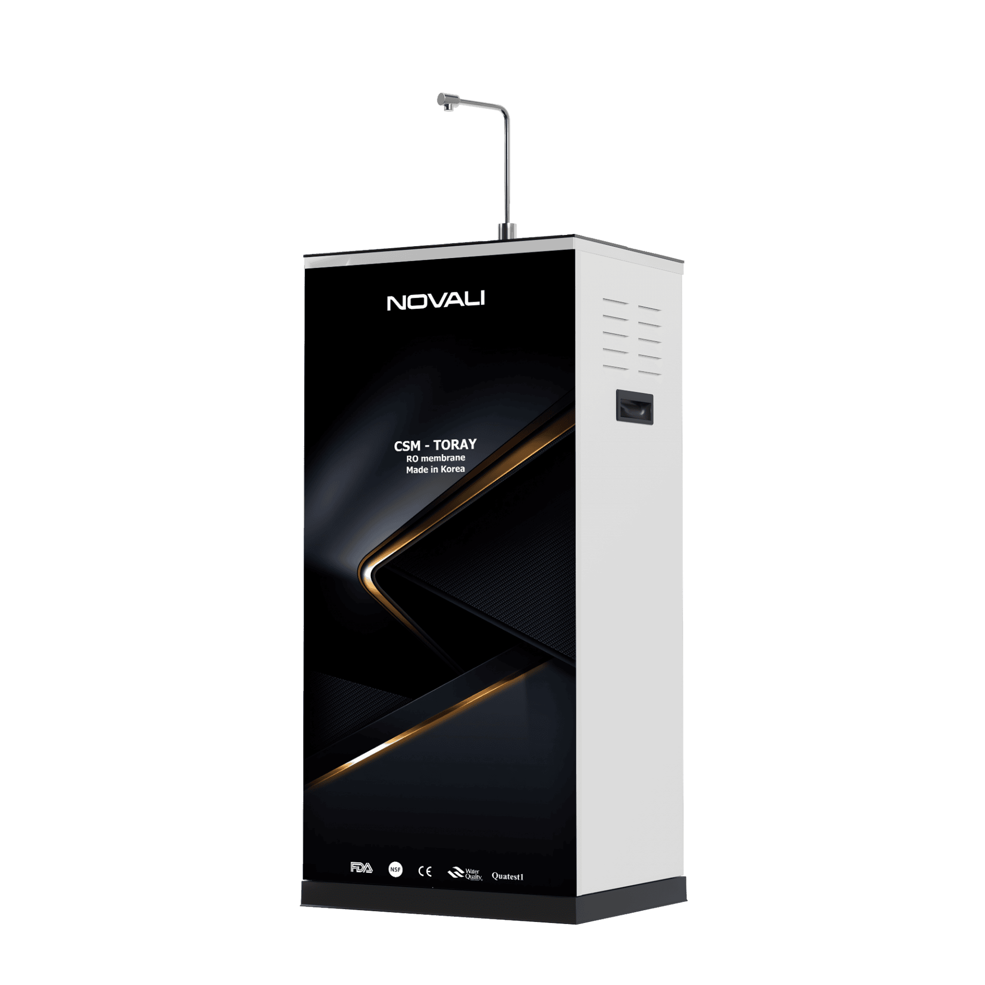 Máy lọc nước RO 10 cấp lọc NOVALI được sản xuất tiêu chuẩn chất lượng nước sau khi được lọc qua máy lọc nước NOVALI đạt chỉ tiêu loại A tiêu chuẩn QCVN 6-1: 2010/BYT Quy chuẩn kỹ thuật quốc gia đối với nước khoáng thiên nhiên và nước uống đóng chai của Bộ Y Tế, được kiểm định bởi tổng cục tiêu chuẩn đo lường chất lượng (Quatest1) . Người tiêu dùng có thể uống trực tiếp nước lọc từ máy lọc nước NOVALI mà không cần đun sôi.